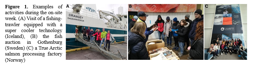 In 2019, the Nordic master’s program in Sustainable Production and Utilization of Marine Bioresources (MAR-BIO) was established by 4 Nordic universities: Gothenburg (Sweden), Nord (Bodø, Norway), Akureyri (left in 2022) and Hólar (both Iceland) in collaboration with the University of New England (Maine, USA). This unique trans- and interdisciplinary program aims to educate the next generation professionals in sustainable blue bioeconomy by combining natural sciences with environmental and social sciences, as well as economics and law. It introduces students to key aspects of the blue bioeconomy and its main industries in each partners’ country. In Norway, focus is on salmon farming, in Iceland on the fishing industry and its sustainable use of natural resources and in Sweden on low-trophic aquaculture. All 3 countries jointly teach technical development of sustainable and innovative aquaculture systems, novel alternative feed ingredients and fish health and welfare in circular systems.