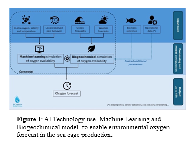 As the cost of feed to the farmer represents up to 70% of the annual expenditure in the salmon industry and in the carnivorous species in general, this marine oxygen modelling in the sea has a specific value proposition to assist the farmers in their day to day operations , helping them to better manage the feeding process . It is a good example of how technical innovation can lead to both (i) a positive environmental impact through less food lost to wildlife, and (ii) an economic gain for the activity through eFCR & SGR improvement.