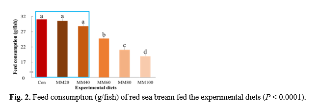 Therefore, this study aims to evaluate the impact of partial or complete FM replacement with high-quality MM in the diet on the growth performance and feed utilization of red sea bream.
