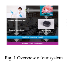 Post-harvest quality management is a critical issue in the global aquaculture industry. Fish prices are determined by species and weight, and the quality itself is often branded by origin by a few experts known as connoisseurs rather than by individual quality. By quantifying quality, it becomes possible to accurately reflect the value of fish in the market. Furthermore, in the supply chain of Japanese sea bream (Pagrus major), up to 15% of processed fillets are discarded annually due to uncertainty in freshness and subjective grading. This leads to a decrease in added value, increased food waste, and constraints on the predictability of shelf life. The K-value is a standard for evaluating the freshness of fish as per JAS (Japanes Agricultural Standards) regulations. Traditional K-value evaluation requires destructive, costly, and time-consuming laboratory HPLC analysis. To address emerging regulatory requirements and sustainability challenges (UN SDGs 12 and 14), we developed and validated a real-time, non-destructive freshness evaluation platform integrating handheld near-infrared spectroscopy (NIR) with advanced AI.