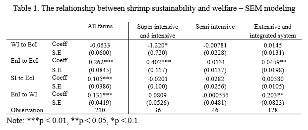 (H3). Additionally, the model from Eq. 2 assesses the interaction between shrimp welfare and environment sustainability relationship by
