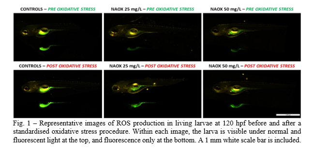 Resulting from an imbalance between reactive oxygen species (ROS) production and antioxidant defence, oxidative stress is a critical challenge for fish (Hoseinifar et al., 2020). In aquaculture settings , and particularly in hatcheries, oxidative stress is a major concern during the early stages of fish development due to the high metabolic activity of the larvae and environmental challenges (Menon et al., 2023) . Excessive ROS production triggers lipid peroxidation, protein misfolding, and DNA damage, leading to reduced growth , impaired immune function, and increased susceptibility to disease (Jia, 2025) . To mitigate these adverse effects, natural plant-derived antioxidants are increasingly being used in the aquaculture industry due to their broad-spectrum ROS-scavenging properties, low toxicity, and sustainability compared to synthetic alternatives (Hu et al., 2025) . This study investigated the effects of water exposure to natural antioxidants on the larval development of zebrafish (Danio rerio), a widely recognised model for developmental and toxicological research , and for studying oxidative stress (Chowdhury and Saikia, 2022) . The experimental design focused on three key aspects: survival and hatching rates, morphometric development, and ROS modulation.
