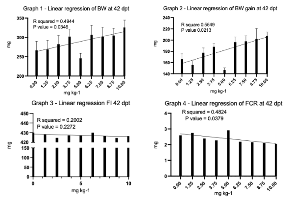 The linear regression of final BW, BW gain, FI and FCR was performed to investigate the dose-reaponse effect of the considered treatments and parameters.