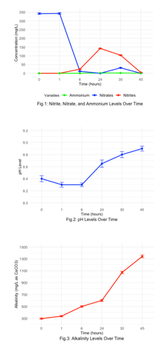 In the present study, nitrate levels dropped from 341.845 mg/L to 0 mg/L within 48 hours, indicating complete removal. This aligns with Silva (2025), where denitrification occurred within 24 hours in treatments with 2000–2500 mg/L of suspended solids. However, our study required more time, reflecting system variations. The biofloc system effectively maintained low ammonia and nitrite levels while achieving nitrate removal.